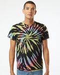 Dyenomite Adult 5.3 Ounce Multi-Spiral T-Shirt. 5.3 ounce Preshrunk 100% cotton with double-needle stitching on neckline and bottom hem.
